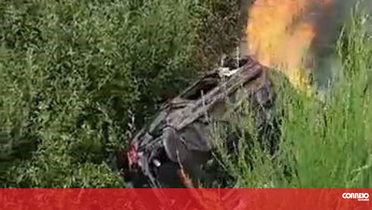 Segundo o que o CM apurou, o carro saiu da autoestrada depois de se despistar e incendiou-se no talude.